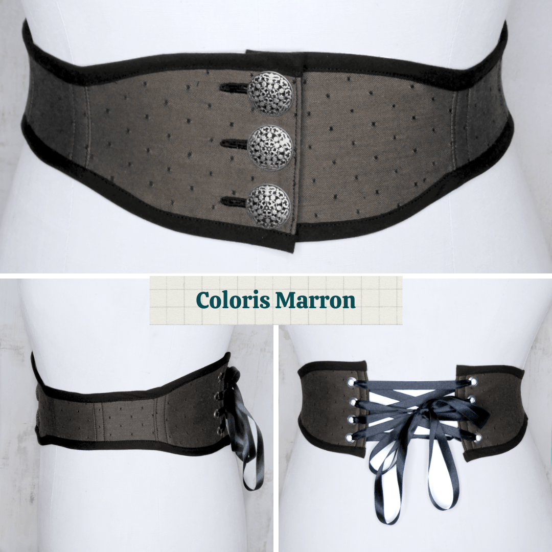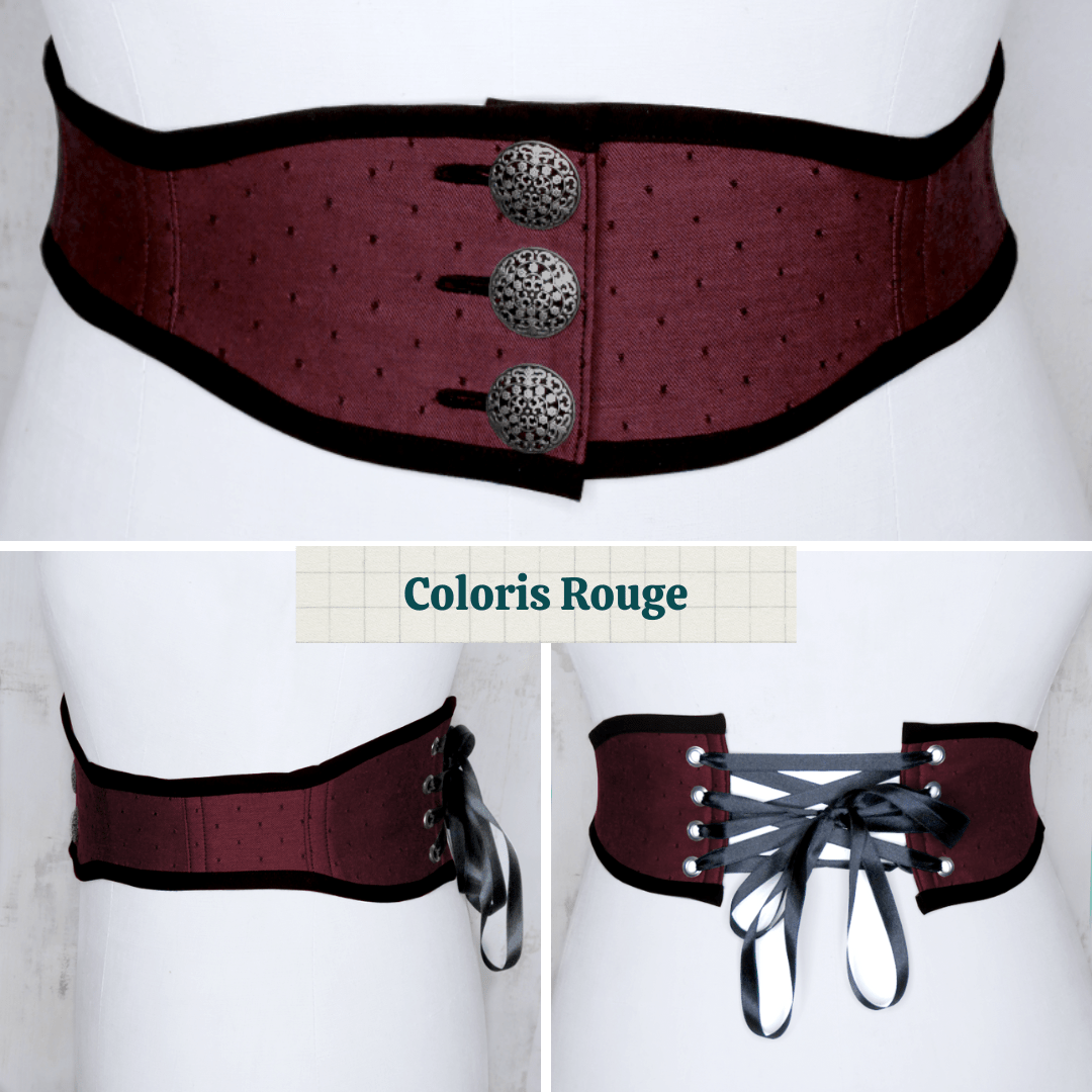 Je l’ai dessinée comme un corset, mais je n’y ai mis aucune baleine ! De ce fait, tu auras la taille marquée mais tu pourras rester souple et vaquer sans soucis à tes occupations quotidiennes !