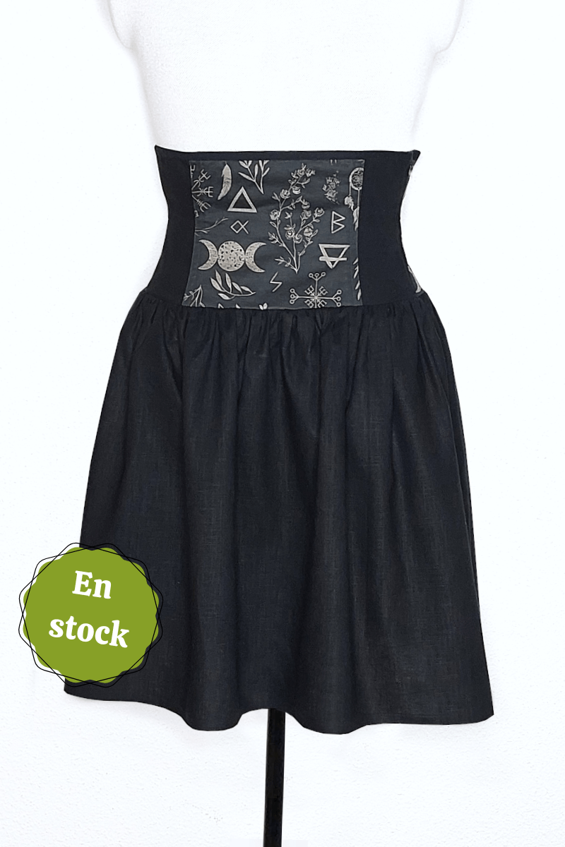 jupe corsetée en lin et coton à motifs ésotériques, parfaite pour un look gothique et witchy.